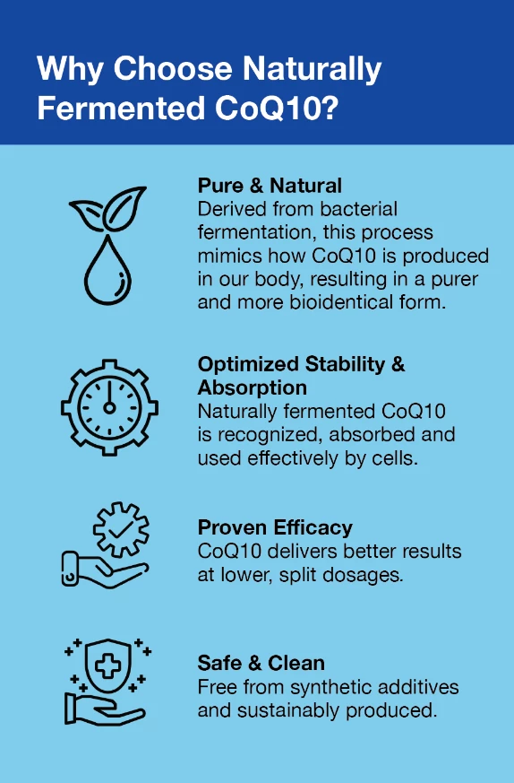 This form closely mirrors the way CoQ10 is produced in our body, making it easily recognized, absorbed, and used by our cells [6].