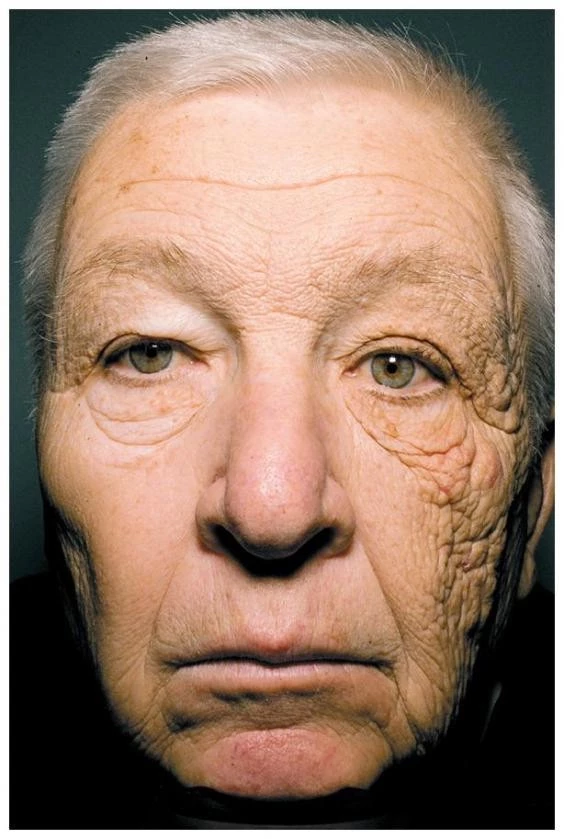 Don’t underestimate the power of the sun’s rays to damage skin! In one landmark study, a truck driver of 28 years who did not wear any sunscreen developed skin thickening, deep wrinkles, and sagging skin on his left side that was exposed to the UVA rays that transmitted through the truck window [2]. This demonstrates exactly how your skin could age with and without sunblock.